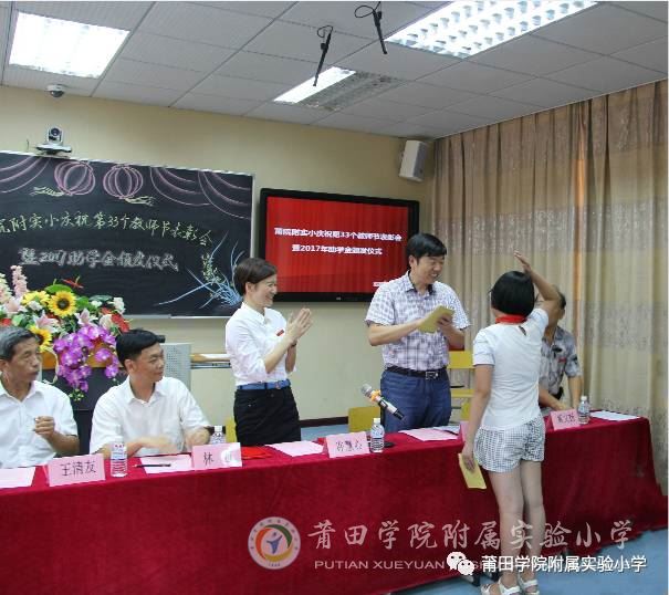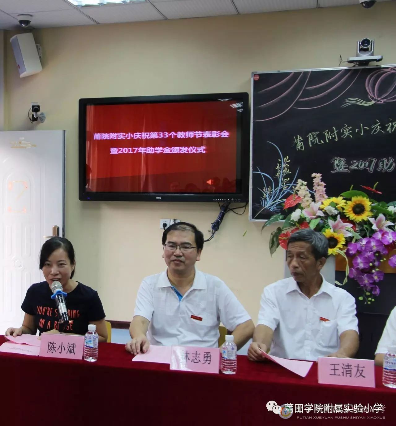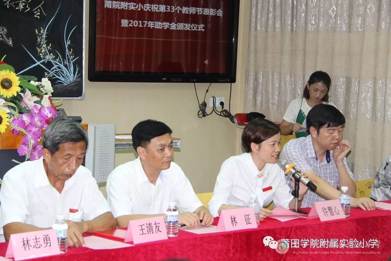 大会在庄严的国歌声中拉开帷幕。林志勇副校长宣读受表彰教师名单与受资助学生名单。本次大会表彰了7名获得省教学成果奖、市莆田市优秀班主任、市先进教师、市教坛之星,6名鲤城街道优秀教师、50名校级先进教师。大会还对15名困难学生进行资助。
