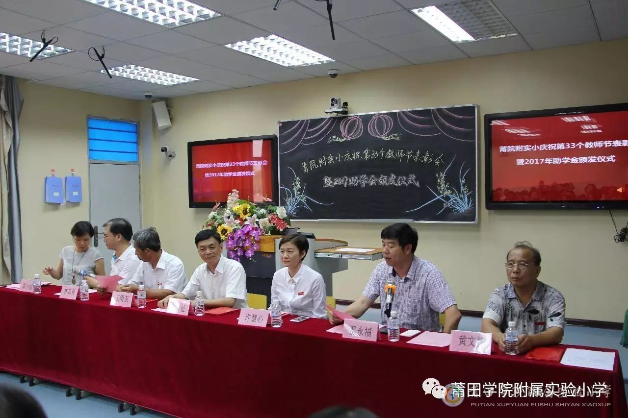 9月11日下午,我校隆重召开第33个教师节表彰大会暨2017年助学金颁发仪式。莆田学院仙游校区管委会领导林征、锦福地产董事长温永福、我校全体教师及部分受助学生代表参加了会议。大会由陈小斌副校长主持。