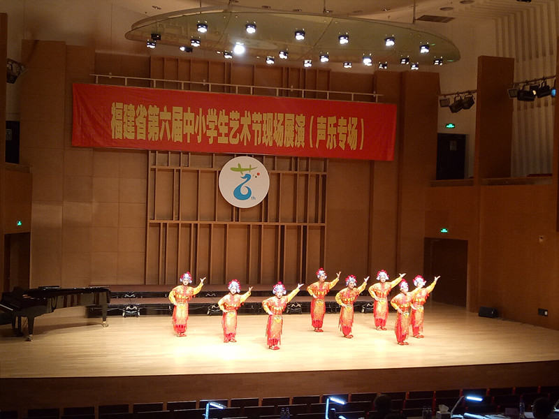 10月28日至11月1日,由福建省教育厅主办、福州市教育局承办的省第六届中小学生艺术节现场展演活动在福州举行。本次艺术节活动项目分为艺术表演类、艺术作品类、学生艺术实践工作坊和中小学美育改革创新优秀案例四大类。我校的合唱《放牛吹起梯噜噜》、小合唱《传奇刀马旦》和朗诵《大山里的孩子》参加了此次省六艺节现场展演活动。1.合唱《放牛吹起梯噜噜》