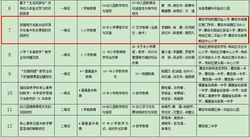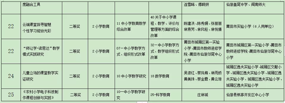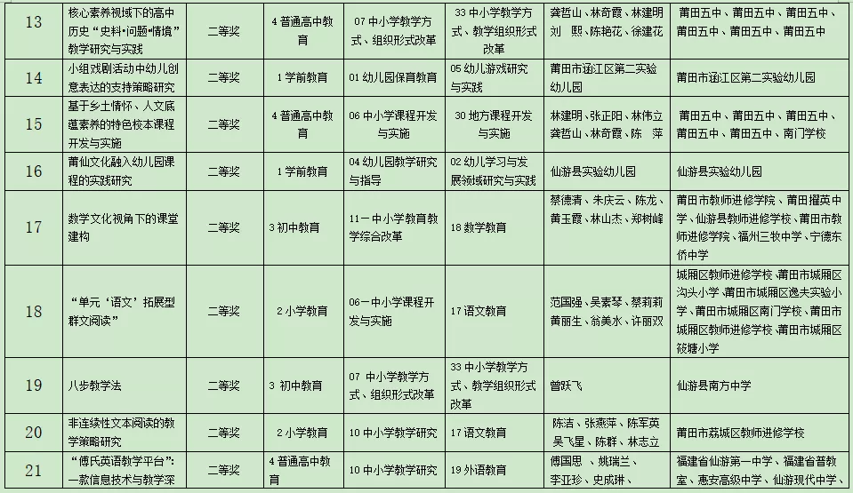 2020年莆田市基础教育教学成果奖获奖项目名单