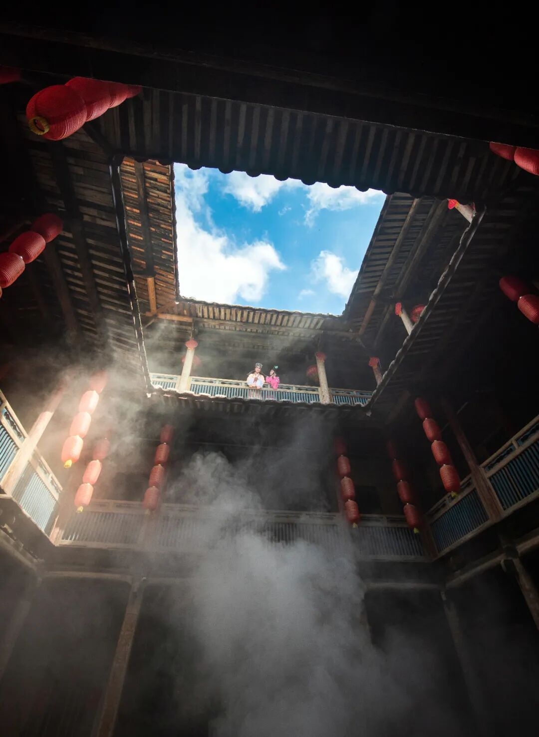 位于园庄镇东石村,土楼称“亦可楼”,呈方形,土木结构,高三层,墙壁最厚1.24米,用三合土夯筑,占地面积约1600平方米,是仙游县目前保留最为完整的一座清代土楼。(摄影/张颖)