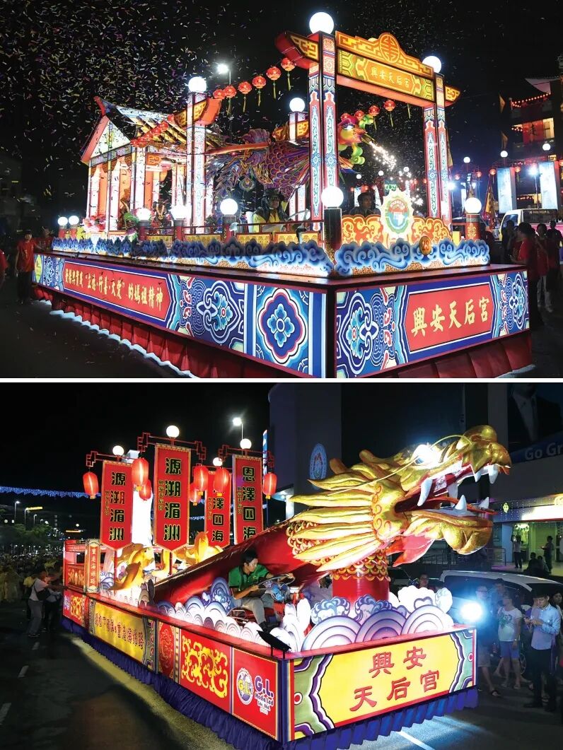 当地26家妈祖文化机构参加巡安,彩车满街,灿烂的烟花照亮天后宫,马六甲之夜热闹非凡。(图片/湄洲妈祖祖庙提供)