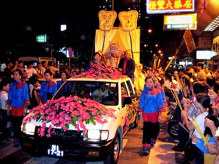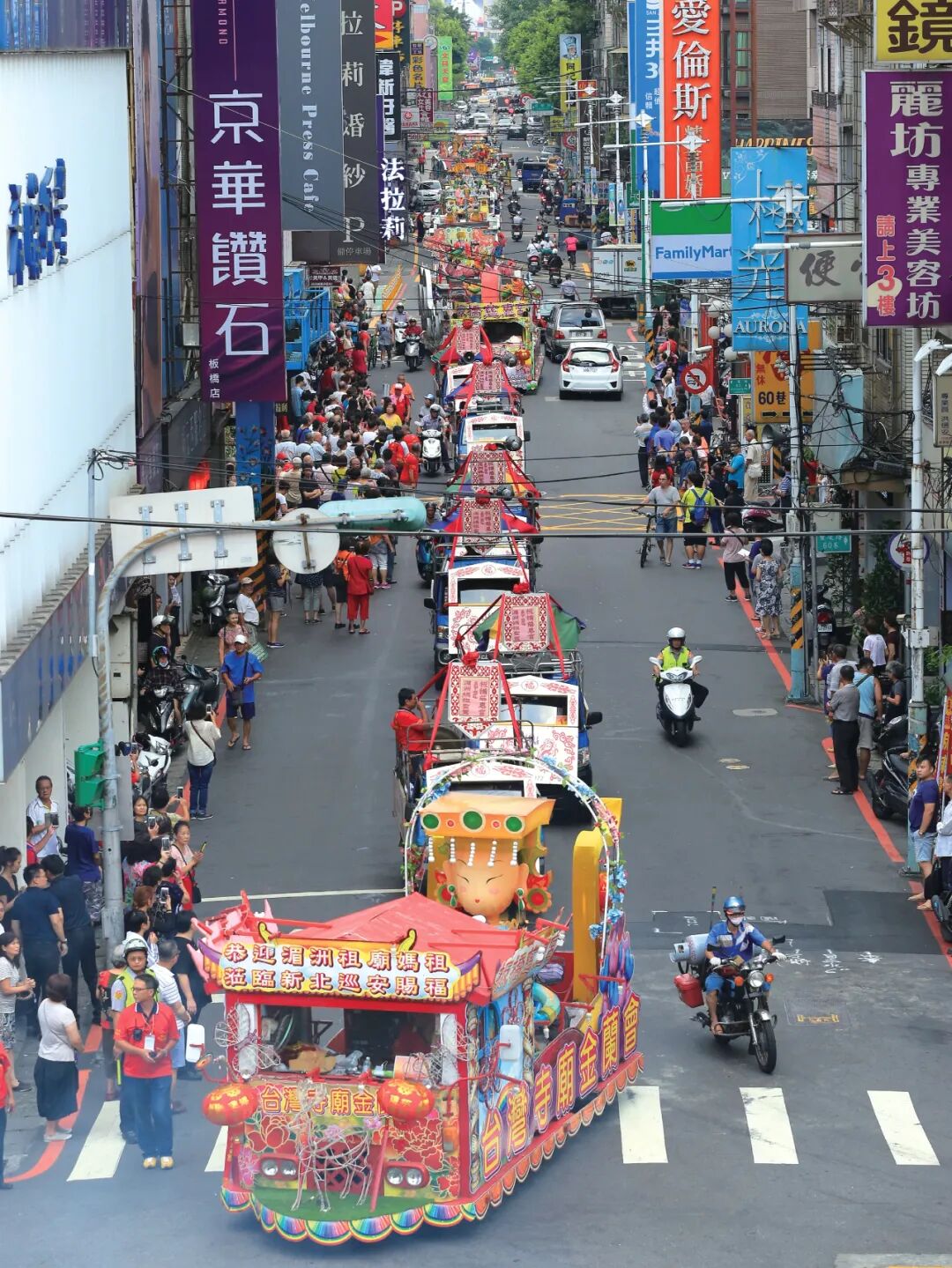 台湾各宫庙精心制作了35辆彩车为妈祖巡安开道。(摄影/高亚成)