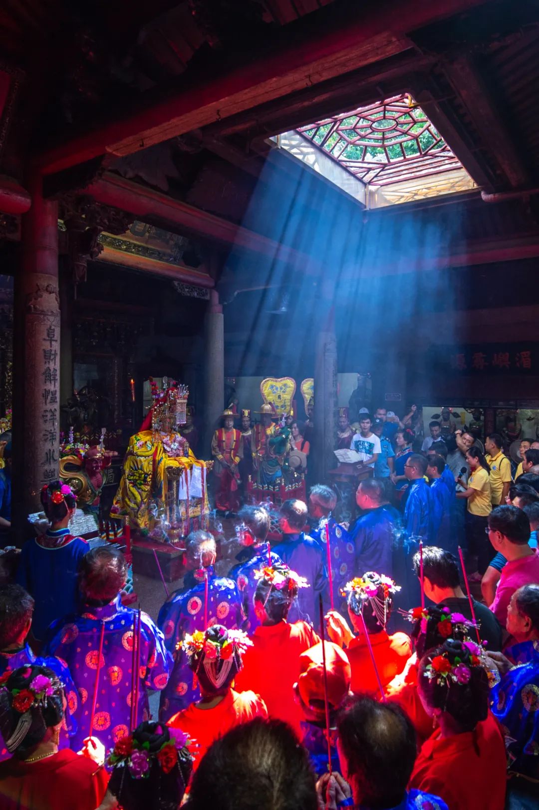 妈祖是保护海上平安的女神,历经宋、元、明、清36次褒封,截至目前传播全球46个国家和地区,建有妈祖宫庙1万多座,敬仰者达3亿多人,2009年“妈祖信俗”被联合国教科文组织列入人类非物质文化遗产代表作名录。(摄影/蔡昊)