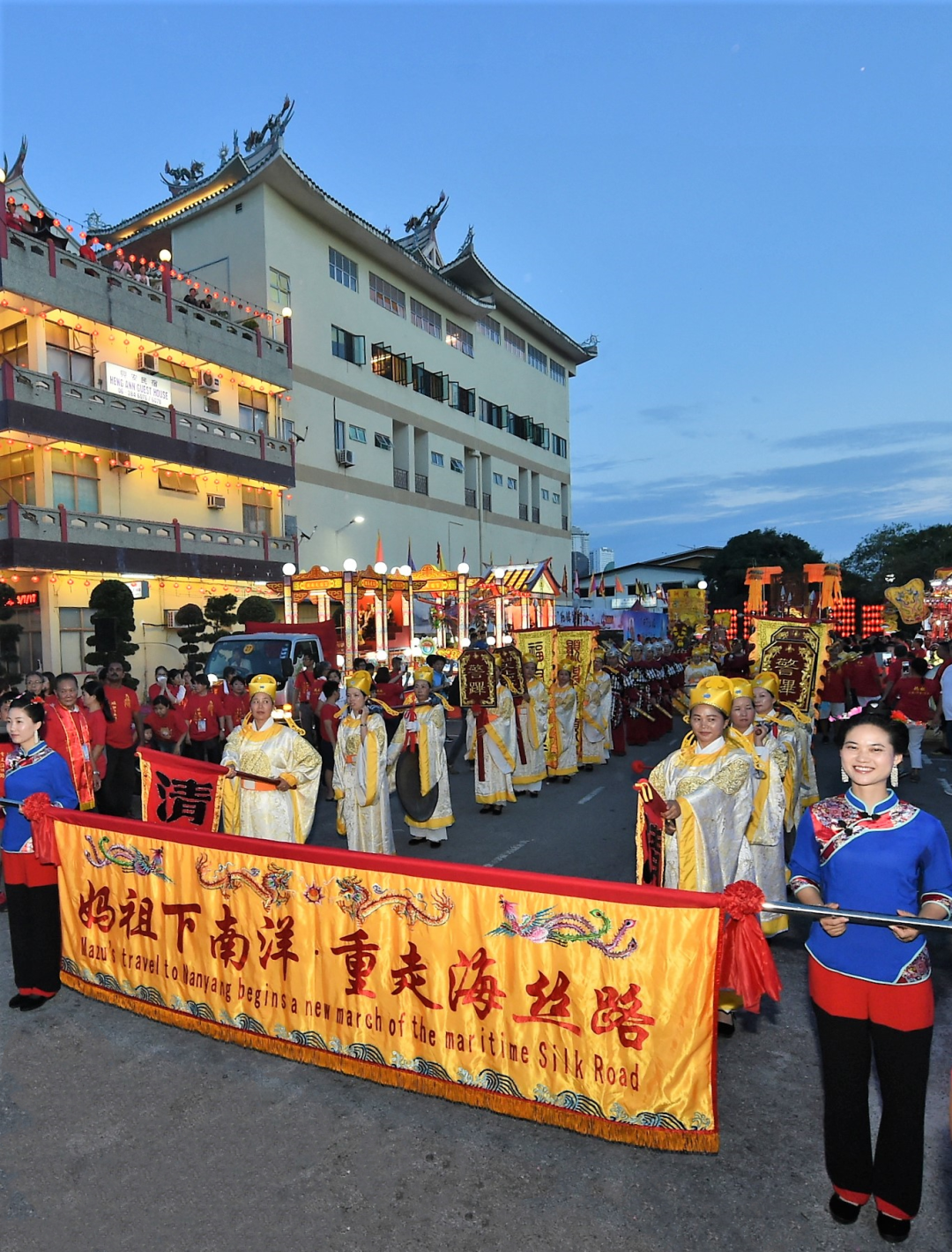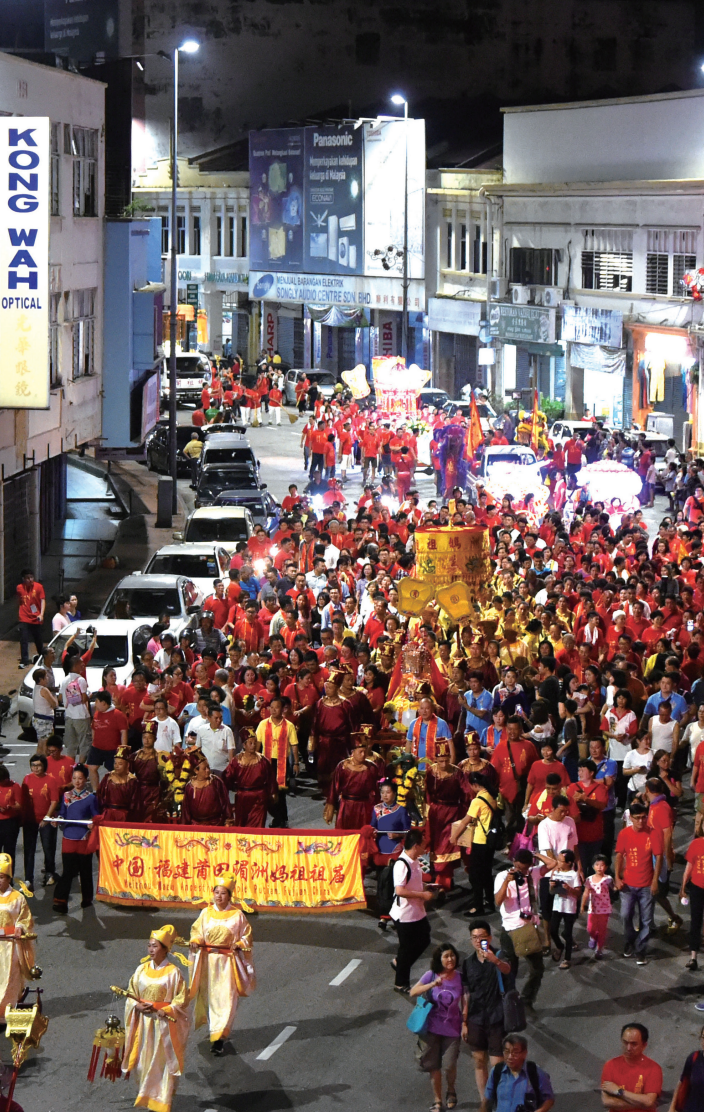 妈祖巡安队伍沿马六甲城区郑和将军路、鸡场街、英雄广场等主要路段巡安,历时4个多小时。(摄影/蔡昊)