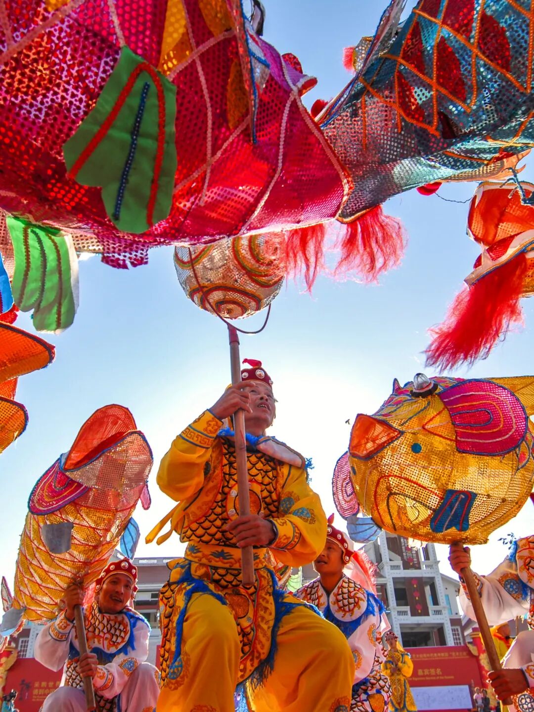 九鲤灯舞是一种传统民俗舞蹈。在莆仙的民俗艺术中,九鲤灯舞可称莆仙戏近亲,均被誉为“南戏活化石”遗存,被列为国家级非物质文化遗产代表性项目名录。(摄影/蔡昊)