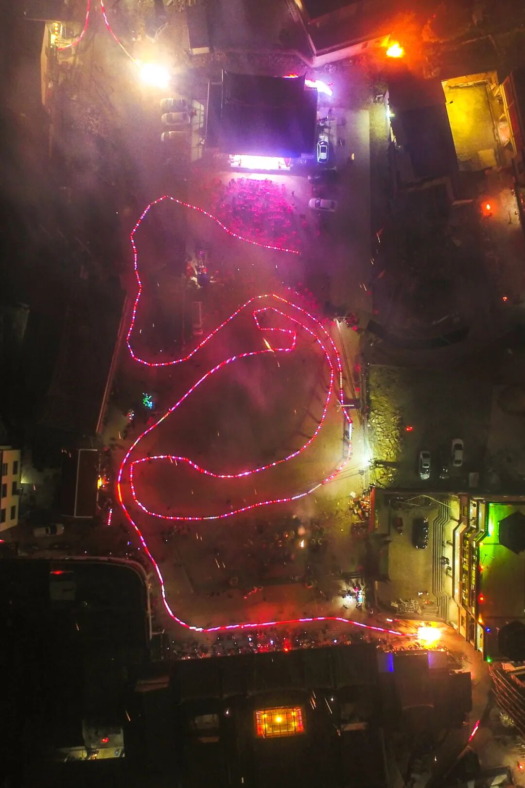 传说灯龙寓意纪念东海蔡姓先祖(北宋名臣蔡襄)所建的洛阳桥。板面即桥面,拐杖即桥墩,花灯如护栏,灯头灯尾如桥头将军,板板相接,环环相扣。(摄影/许武)