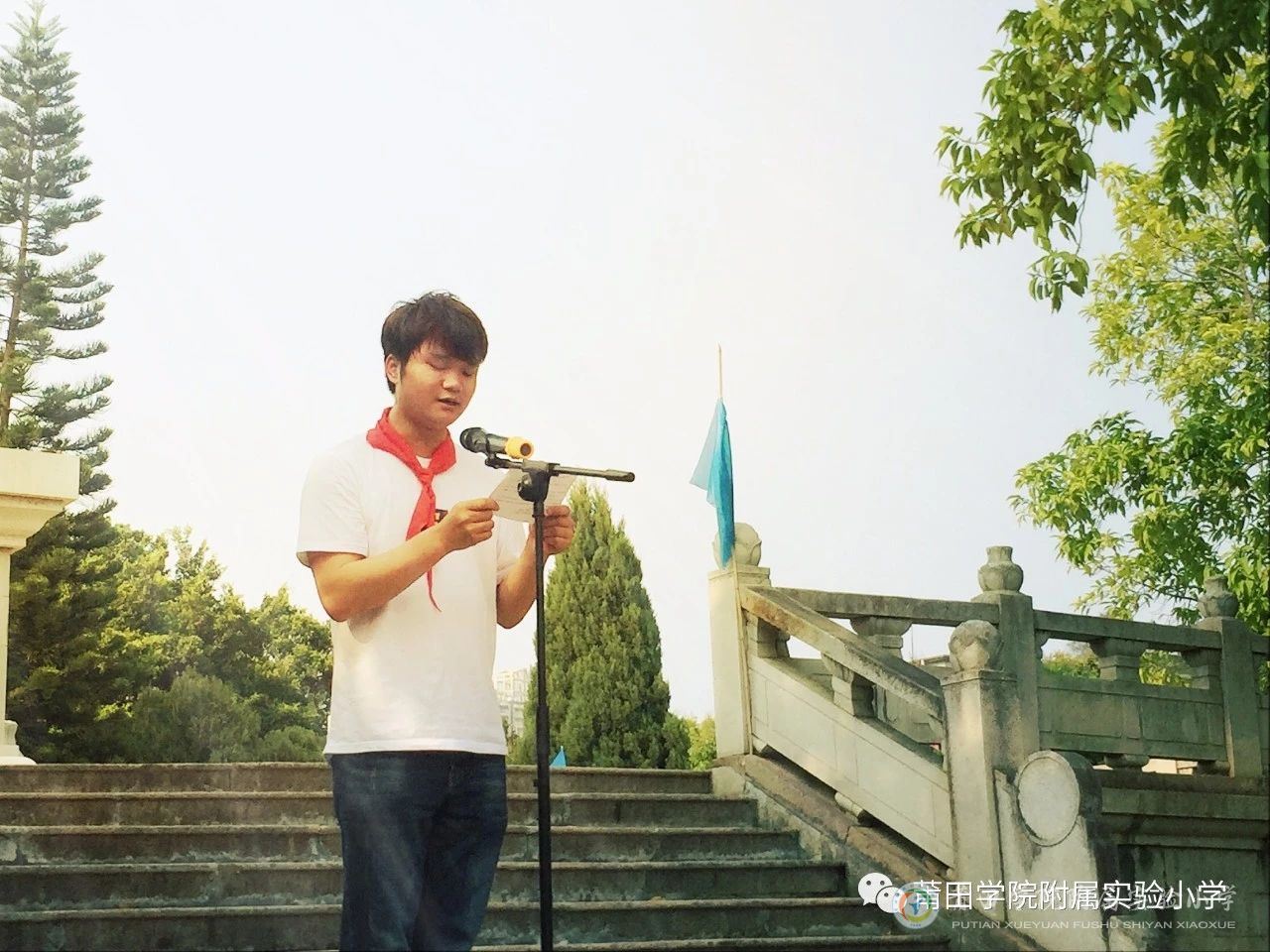少先队辅导员代表傅老师诵读祭文