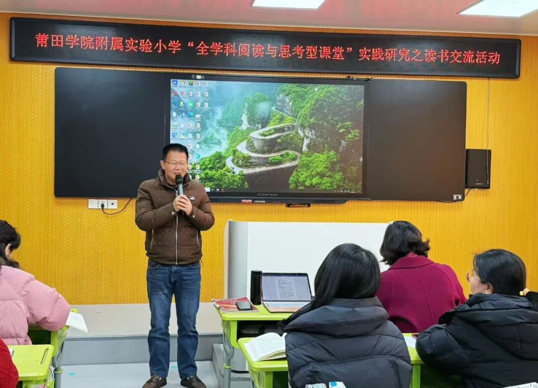 冬日暖阳,书香沁人。1月8日上午,莆田学院附属实验小学围绕《全学科阅读怎么做》一书,组织开展了“全学科阅读与思考型课堂”实践研究读书交流活动。本次活动特邀本书作者林高明老师亲临现场,与老师们共聚一堂,围绕书籍内容深度分享与对话,共探阅读与思维相融合的课堂实践路径。