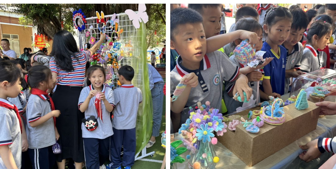 四年级的同学们搭建“科学实验站”“手工坊”“职业体验区”,孩子们沉浸式体验。