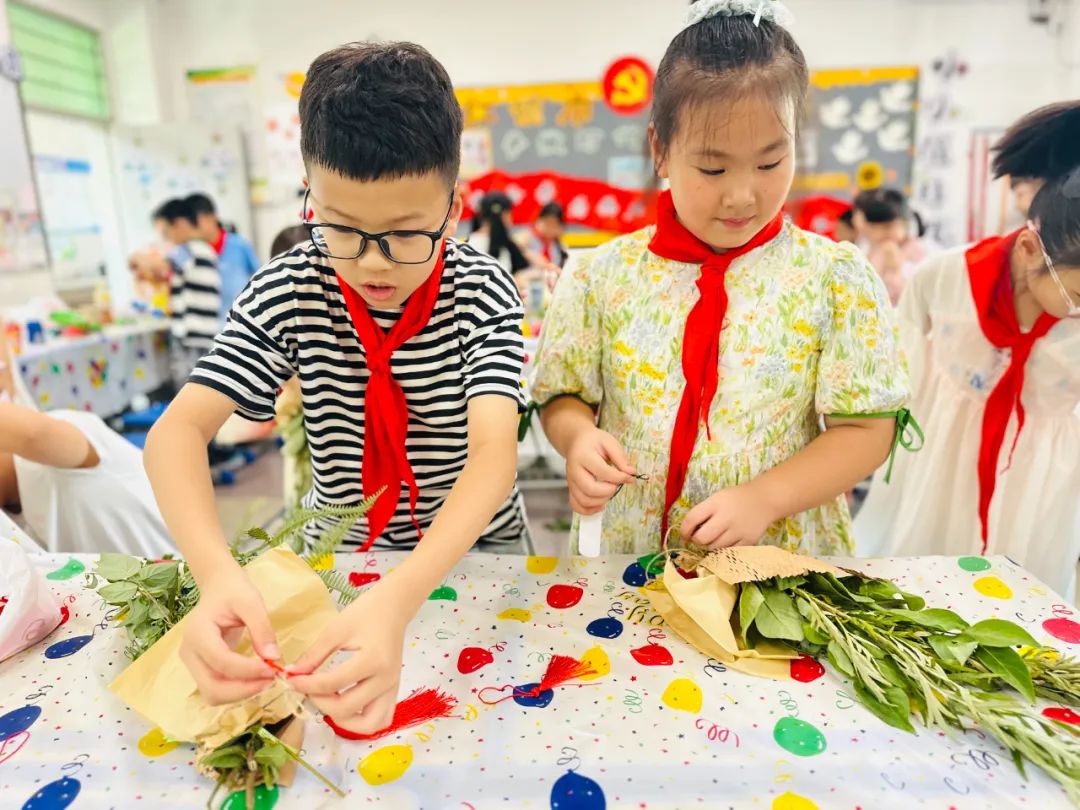 当六一的童真遇上端午的粽香,一场传统文化与童年欢乐的奇妙碰撞精彩上演!5月30日,莆田学院附属实验小学开展“牢记党的教导 争做强国少年”少先队主题实践暨“我们的节日·端午”游园活动,全校师生在沉浸式体验中感受双节魅力,传承文化薪火。 卷粽叶、填糯米,传统滋味在孩子们的指尖流转;捆艾草、制香囊,清新的草药香在空气中弥漫;奏清音,吟诗词,悠悠古韵传递着佳节情怀......绘蛋斗蛋、漆扇制作、游戏竞赛等活动也趣味十足。 此次游园活动以寓教于乐的形式,将传统文化融入少年儿童成长教育,既展现新时代少年“争做强国少年”的精神风貌,也让端午习俗在孩子们心中生根发芽。