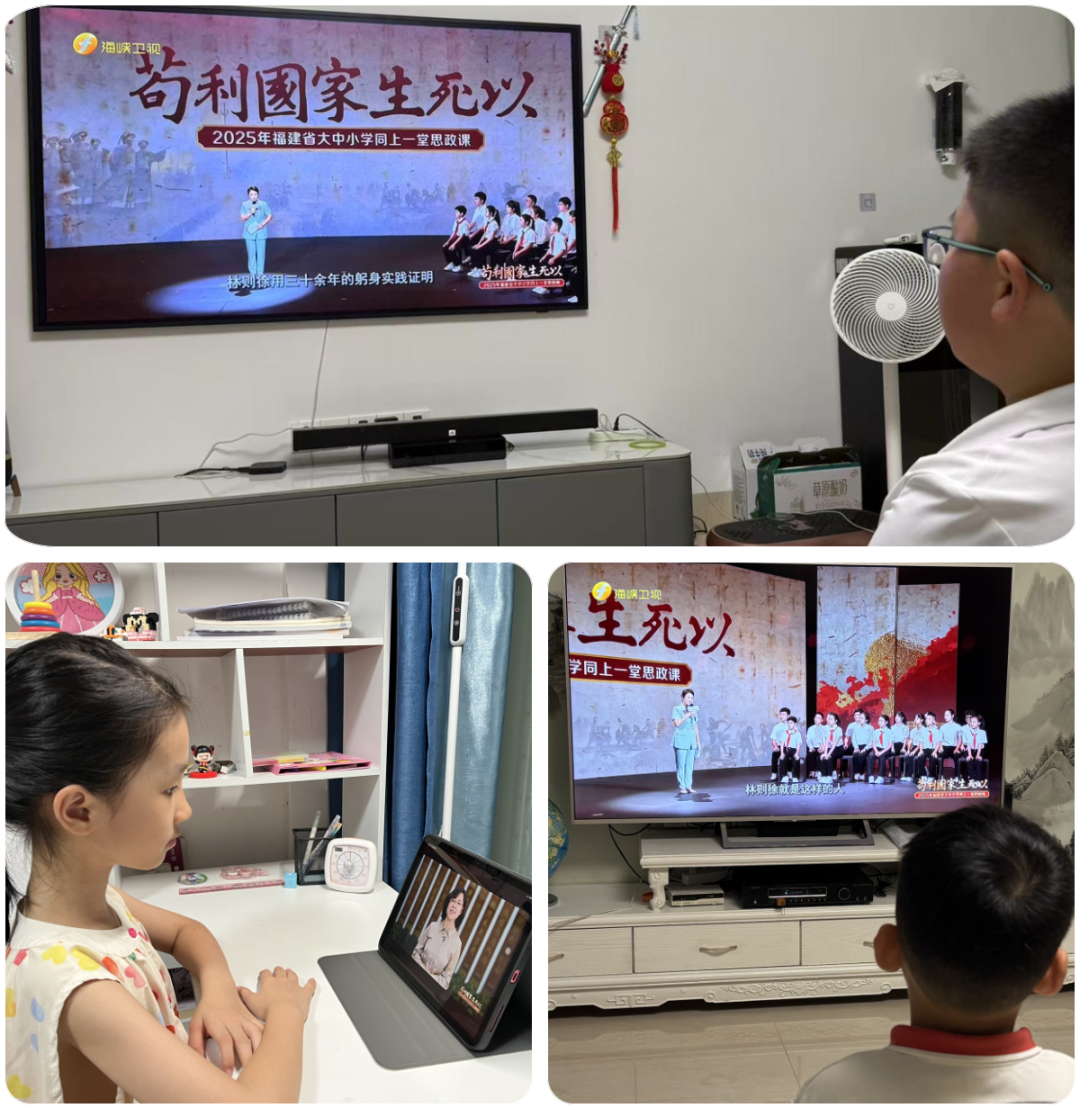 8月30日,《苟利国家生死以——福建省大中小学同上一堂思政课》如期开播。本堂思政课聚焦于林则徐的家国情怀与爱国主义精神,通过邀请林则徐后人以及省内外知名学者生动讲述,结合实地实景、场馆旧址等情境展示,从少年则徐、爱民清官、民族英雄、深远影响四个篇章,多层次、立体式地展现了林则徐一生为人为官为事的价值立场、精神境界和意志品格。通过学习林则徐的事迹和精神,学生们上了一堂生动的爱国主义教育课,引导学生树立和坚持正确的历史观、民族观、国家观、文化观,激励学生厚植爱国之情、砥砺强国之志、实践报国之行。 8月31日,我校积极响应省委教育工委、省教育厅、省妇联号召,组织全校家长收看《阅读,始于家庭,始于家长——开学家长第一课》视频课程。家长认真聆听专家讲解,学习家庭阅读引导方法与氛围营造技巧。后续学校将持续推进亲子阅读分享活动,深化家校共育,助力书香家庭与书香校园建设。 9月1日,2025年《开学第一课》准时开播。节目以“铭记与奋斗”为主题,旨在纪念中国人民抗日战争暨世界反法西斯战争胜利80周年,带领同学们重温那段血与火的抗战岁月,领会伟大的抗战精神。节目通过讲述“平型关大战突击连”等英雄连队事迹、新安旅行团少年抗日故事,展现延安《黄河大合唱》诞生历程与军队装备发展,缅怀杨靖宇等英烈、铭记南京大屠杀真相,让师生感悟和平来之不易。 系列“开学第一课”既为学生搭建了思想启迪、精神成长的平台,也打通了家校共育的高效沟通渠道。我校将以此为起点,持续策划开展多样化教育活动,推动学生全面发展,不断深化家校协同育人成效,为新学期教育教学工作开好局、起好步。